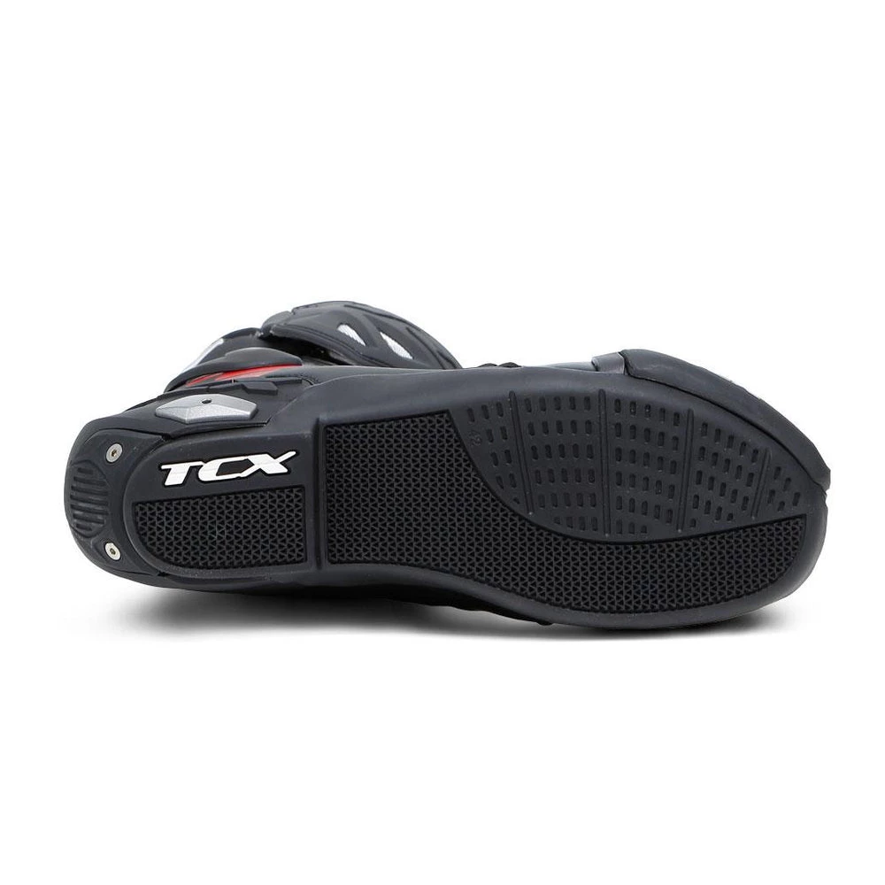 - Lightweight rubber outsole with differentiated design for optimal grip on the footpegs
