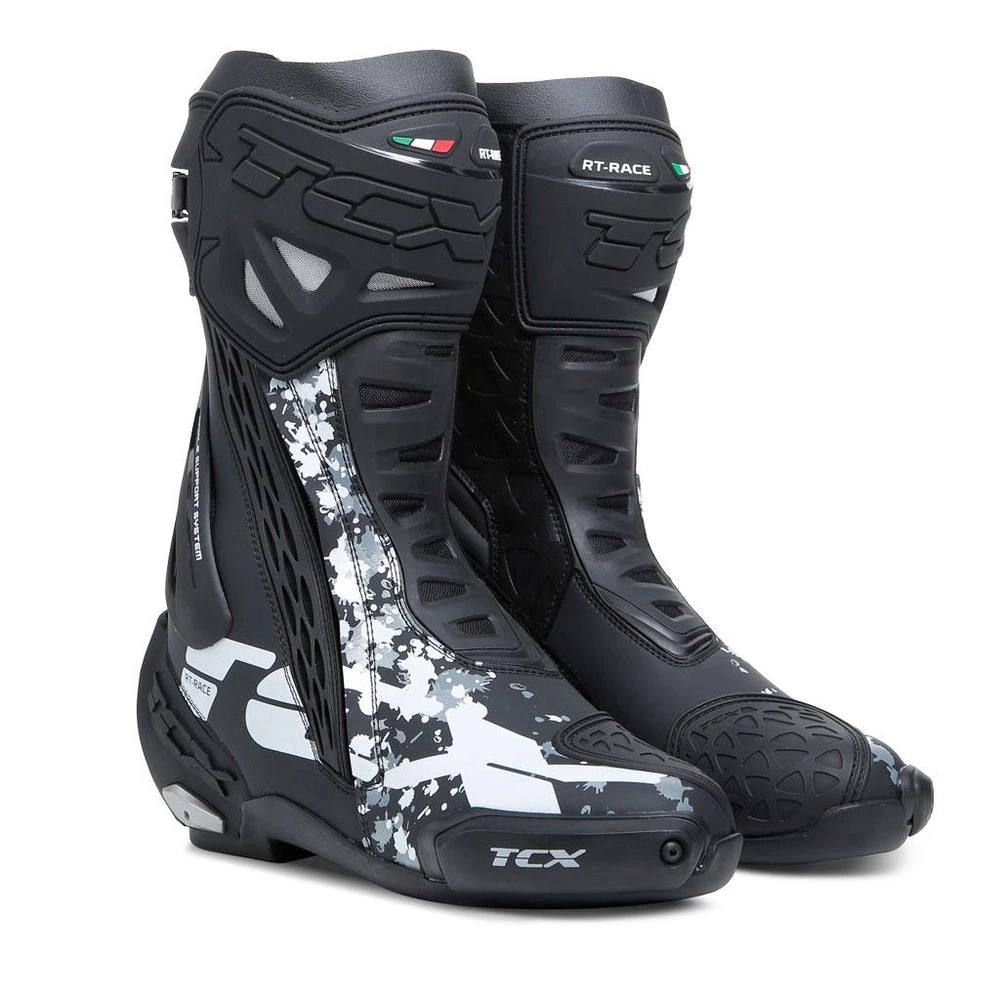 - Lightweight rubber outsole with differentiated design for optimal grip on the footpegs